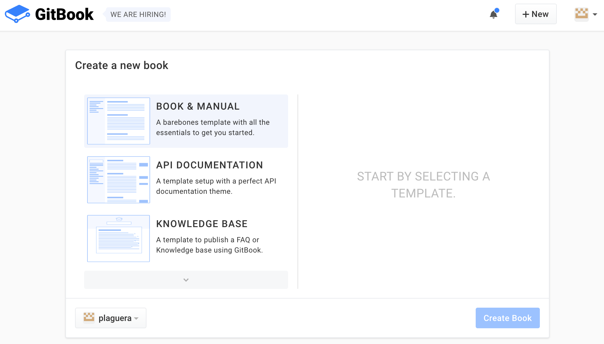 Ahora podemos empezar a crear libros en Gitbook.